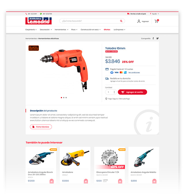 Tuvimos el gusto de llevar a cabo el diseño y desarrollo de la sucursal virtual para uno de los proveedores, de materiales y herramientas para carpintería, más importantes de la provincia. El objetivo fue diseñar un sitio simple y de fácil navegación, pensando siempre en el usuario, para que su experiencia de compra sea la mejor.
