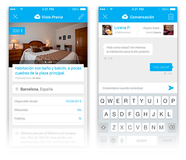 Nos convocaron para diseñar y desarrollar una aplicación móvil que les permita a sus clientes publicar anuncios de manera rápida y fácil. Como así también que los usuarios de la plataforma puedan encontrar, en pocos minutos, un piso compartido para alquilar en las principales ciudades de españa y el mundo. Con la ventaja diferencial de poder conocer a los anfitriones y contactarse con ellos antes de alquilar
