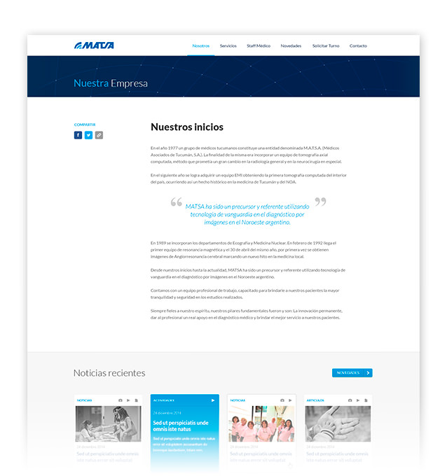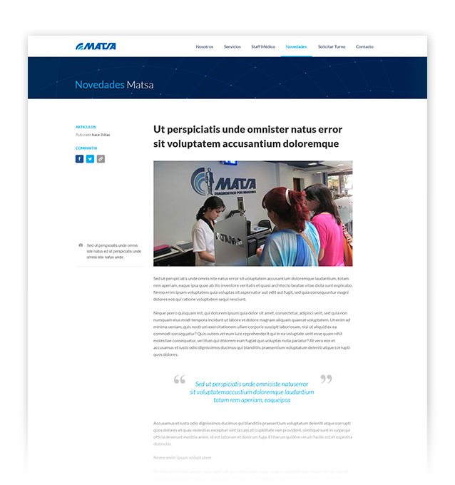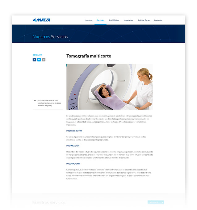 Trabajamos junto al equipo de Eureka! Marketing en el diseño del sitio institucional de este importante centro de diagnóstico por imagen, con el principal objetivo de crear un sitio atractivo, simple, fácil de navegar y accesible desde cualquier dispositivo. Donde los pacientes puedan acceder rápidamente a toda la información acerca de sus servicios y novedades, solicitar turnos y consultar el estado de sus estudios